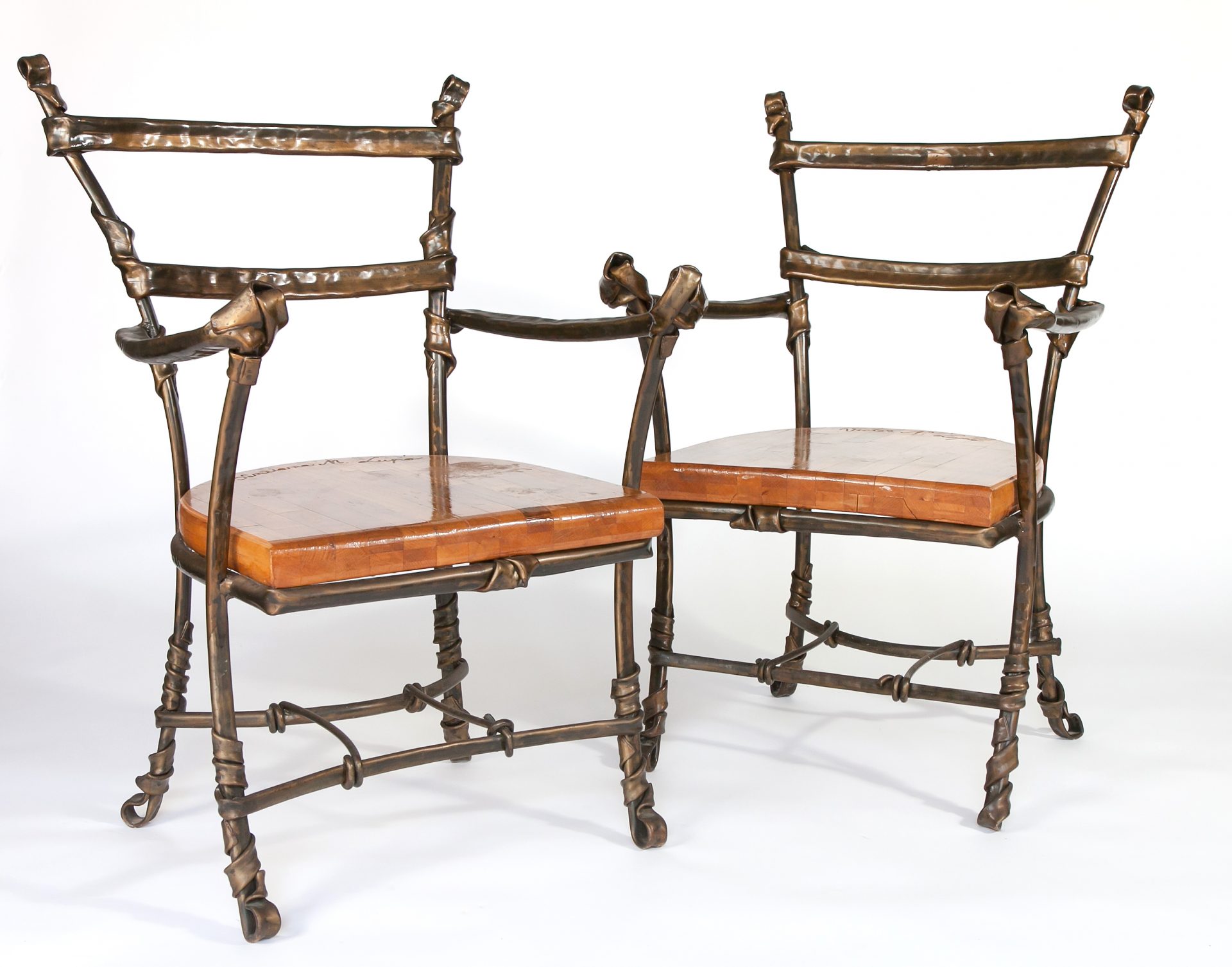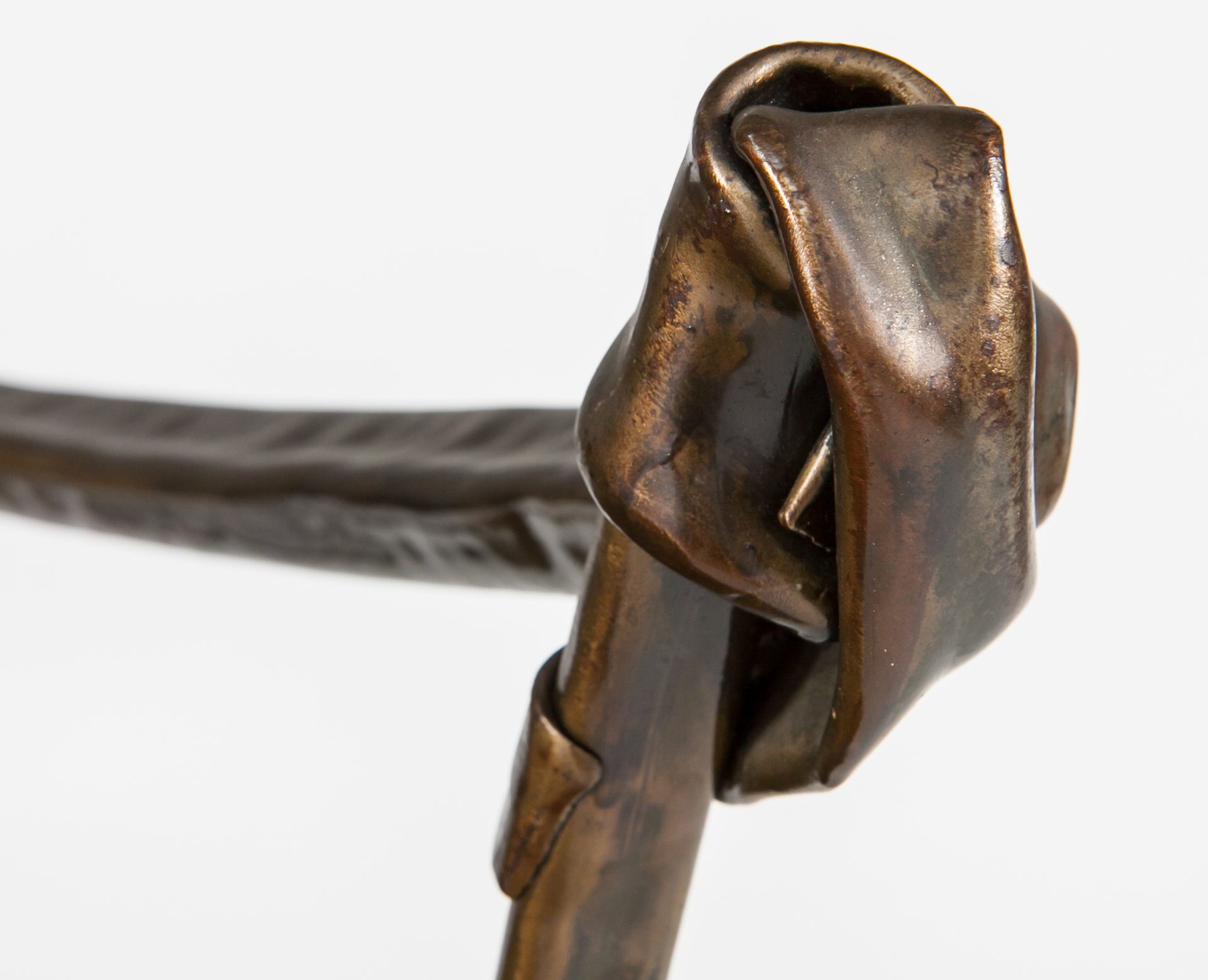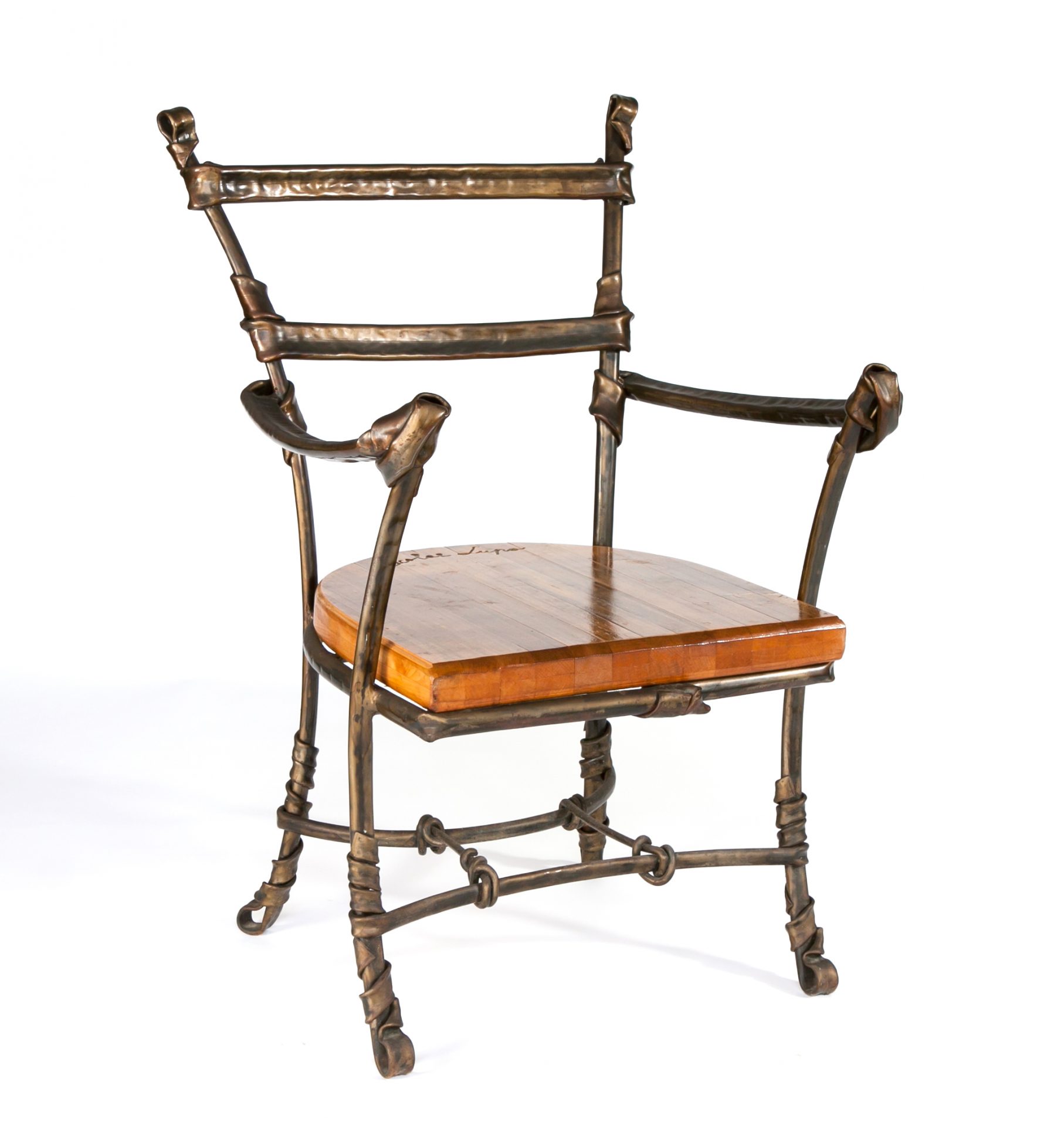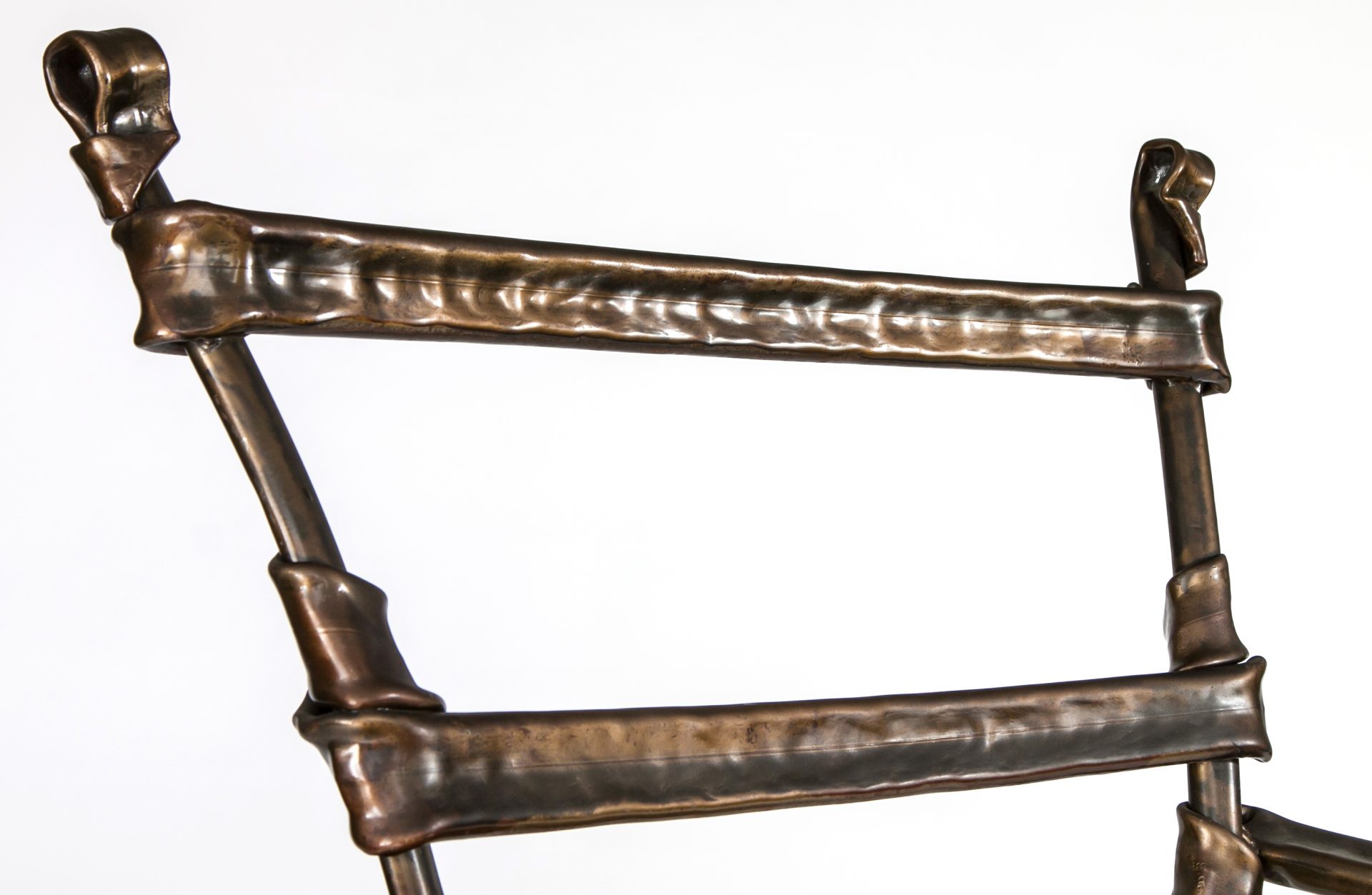 A chair that carries the memory of fire and gesture,this piece brings together raw material and worm wood in a balanced, expresive form. Each element of the structure is individualy forged, shaped, and assembled, preserving the marks of the process-the subtle irregularities, the tension in the lines, the quiet strenght of the material. The metal frame unfolds like a drown lin in space, slightly imperfect, yet intensionally alive. Wrapped joints and hammered surfaces, reveal the hand behind the work, giving the chair a tactile, almost narative quality. In contrast, the wooden seat introduces warmth and stability, inviting use while grounding the piece visualy. Though fully functional, the chair exists equally as a sculptural object-an intersection between utility and expression. Each piece is unique, made in small series or as a on-off, with the possibility of adapting the proportions, finishes, or wood essence to fit a specific space. Materials: forged metal/solid wood Finish: hand- finished patina, natural wood oil Function: seating/sculptural object Customization: dimensions, wood type, patina tone